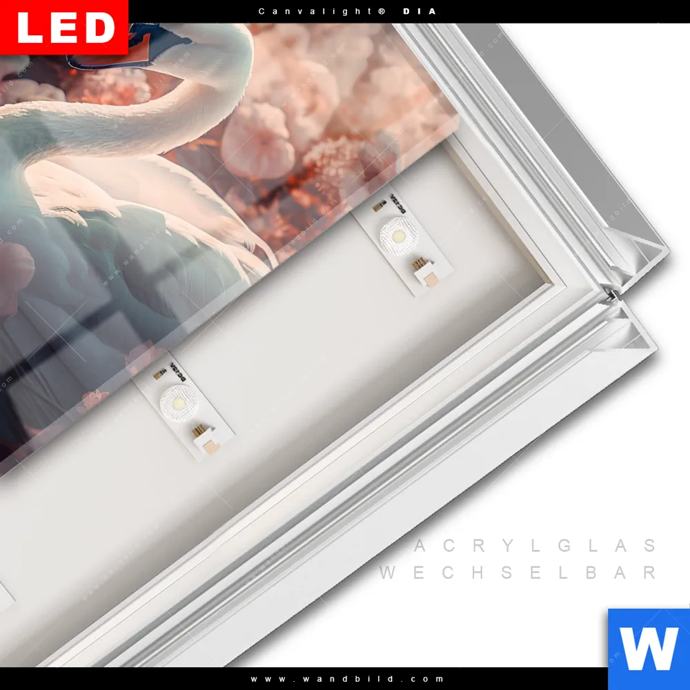 LED-Glasbild mit austauschbarem Acrylglas-Druck (Wechselbild)