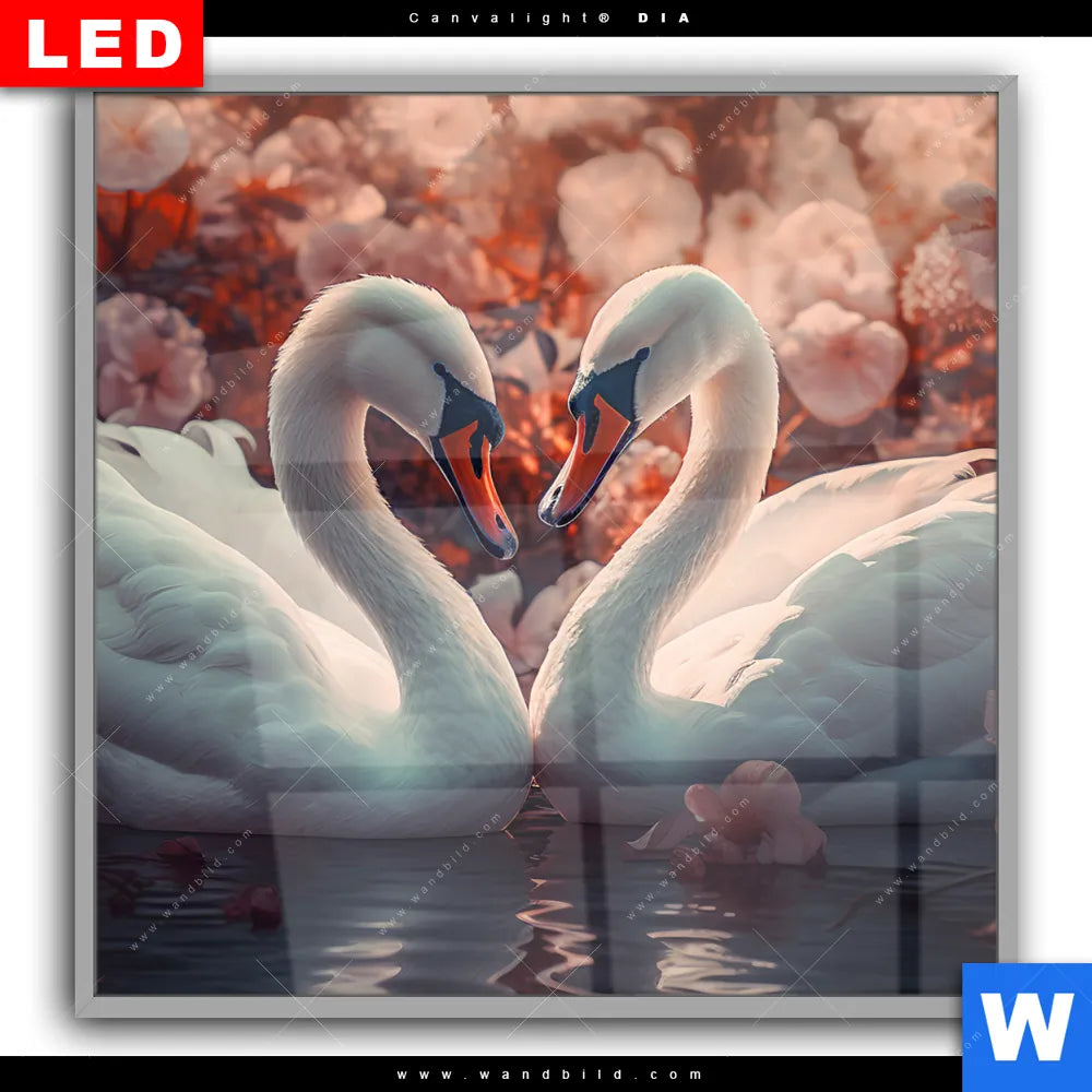 Canvalight® DIA Leuchtbild | Zwei Schwäne im Wasser | Quadrat