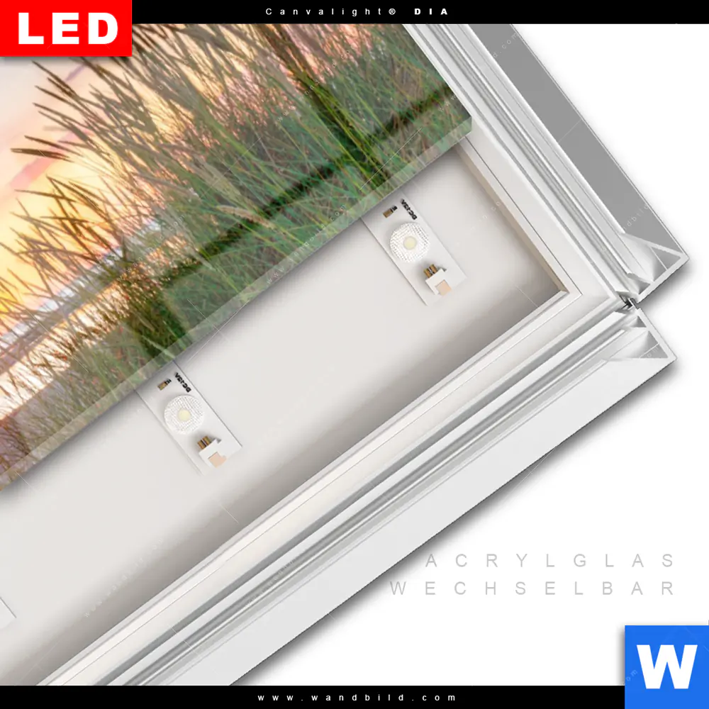 LED-Glasbild mit austauschbarem Acrylglas-Druck (Wechselbild)