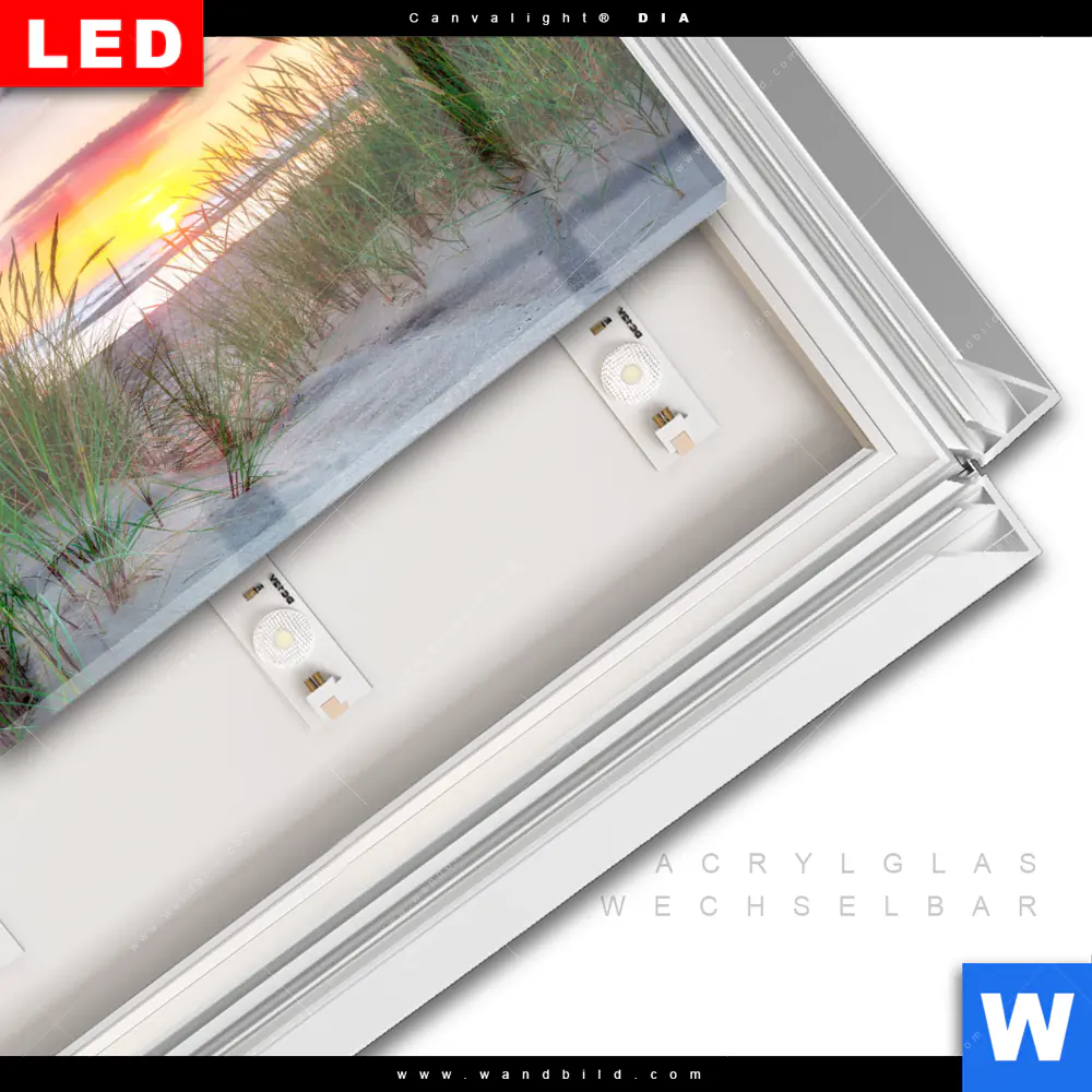 LED-Glasbild mit austauschbarem Acrylglas-Druck (Wechselbild)