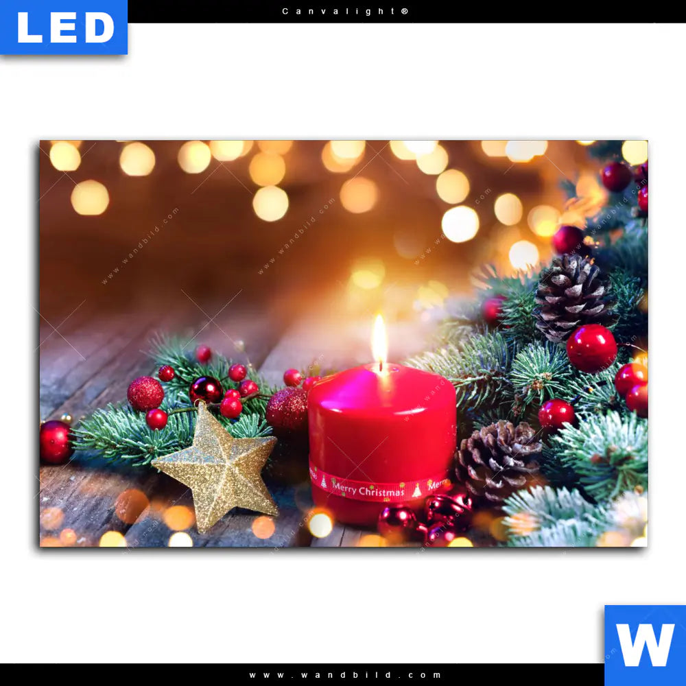 Canvalight® Leuchtbild | Adventskerze mit Weihnachtsschmuck | Querformat