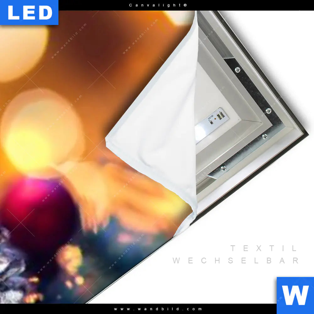 LED-Textilrahmen-Bild mit austauschbarem Winter Textil-Druck (Wechselbild)