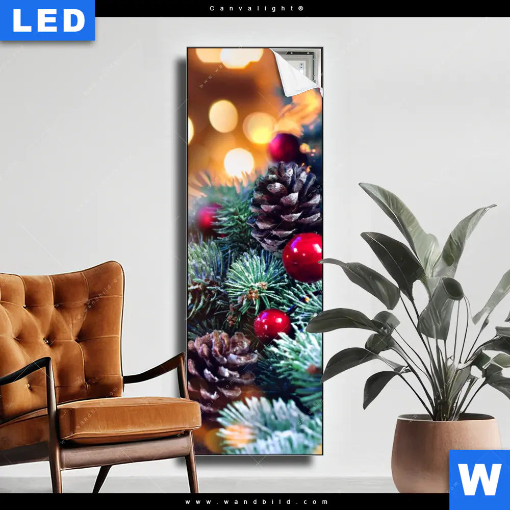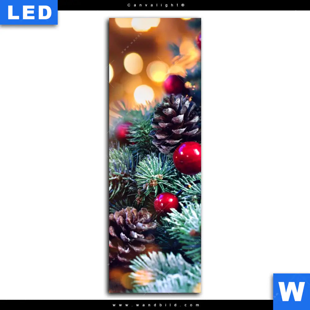 Canvalight® Leuchtbild | Adventskerze mit Weihnachtsschmuck | Schmal