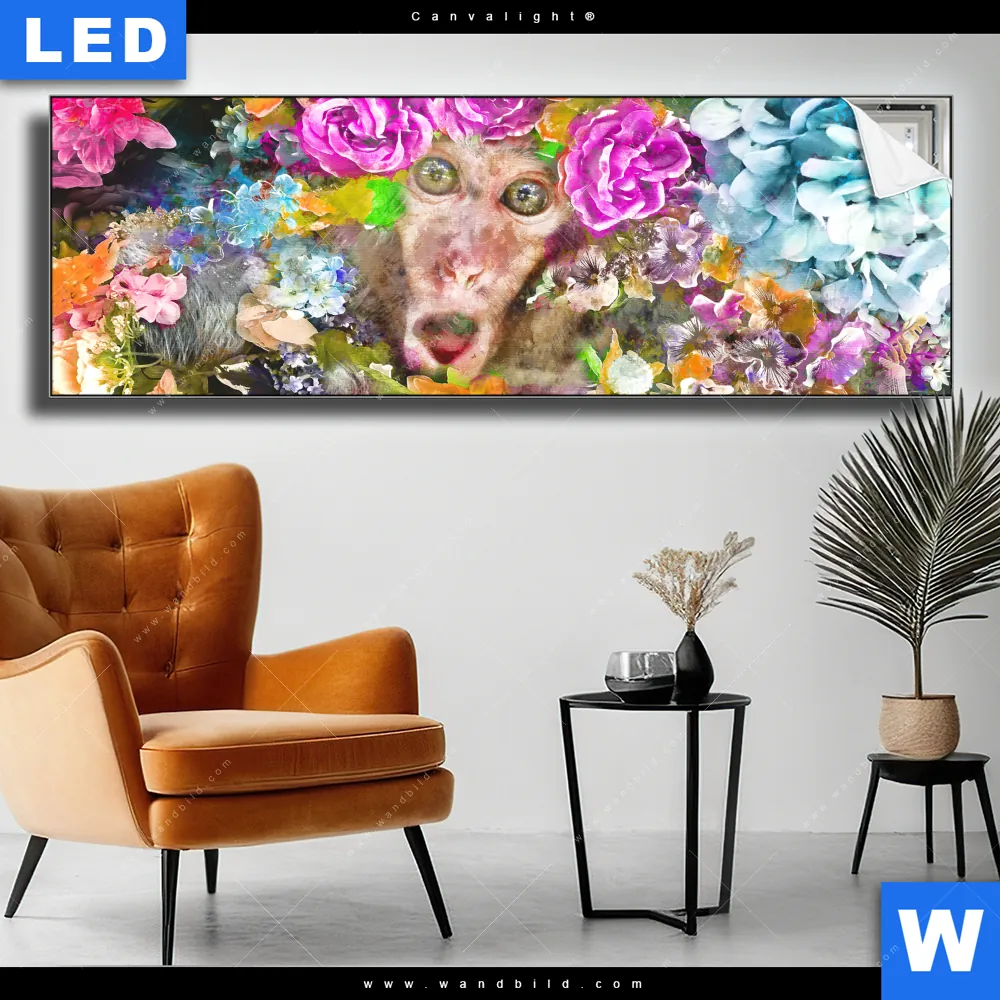 Canvalight® Leuchtbild | Äffchen & Blumen | Panorama