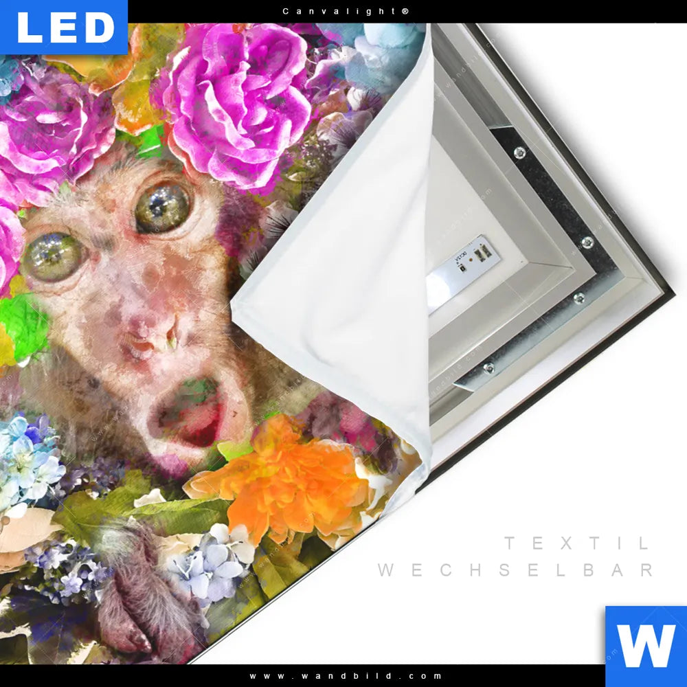 Canvalight® TEX Leuchtbild | Äffchen & Blumen | Quadrat