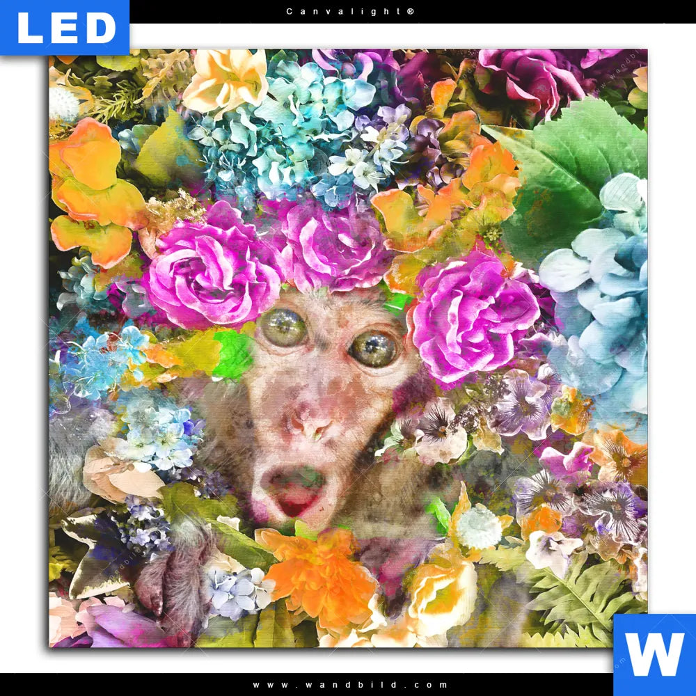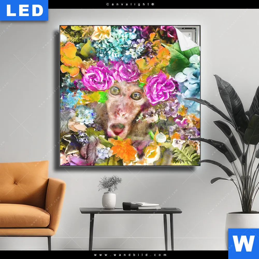 Canvalight® Leuchtbild | Äffchen & Blumen | Quadrat