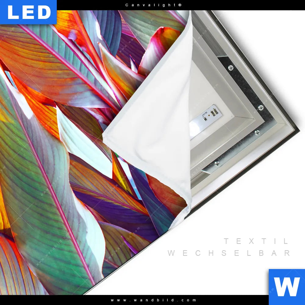 Canvalight® TEX Leuchtbild | Blätter in bunten Farben | Quadrat