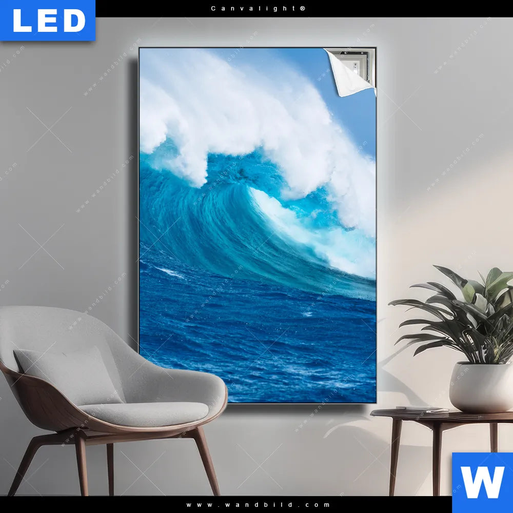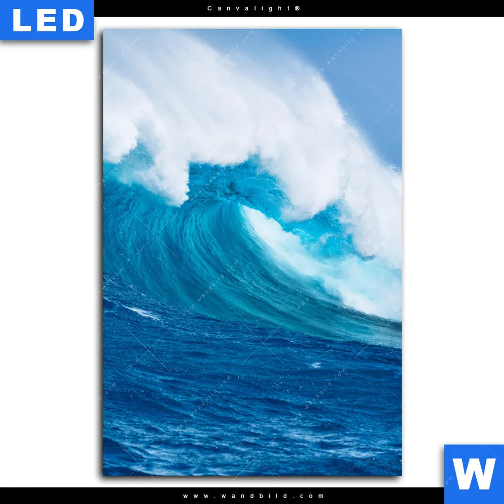 Canvalight® Leuchtbild | Blaue Welle im Meer | Hochformat