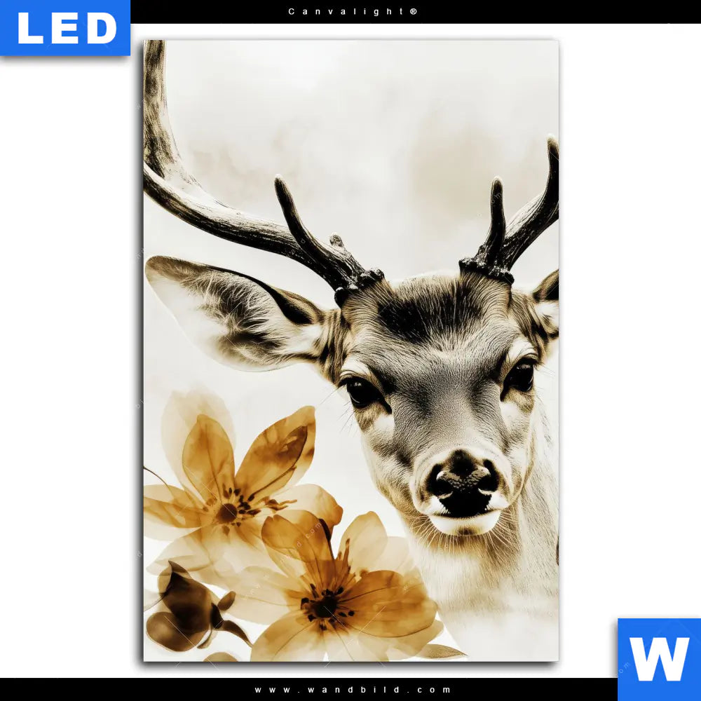 Canvalight® Leuchtbild | Blütenpracht trifft Geweih | Hochformat