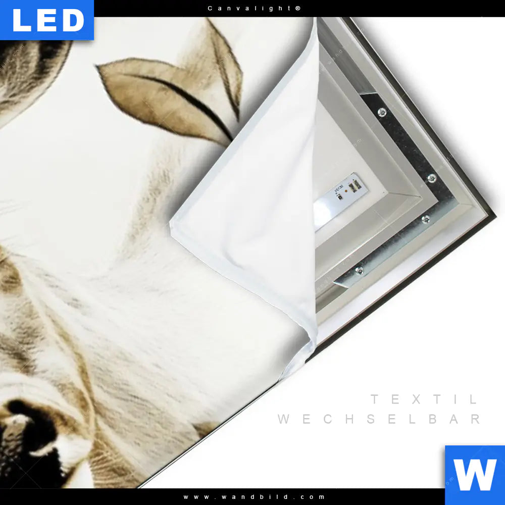 LED-Textilrahmen-Bild mit austauschbarem Tierwelt, Blumen - Botanik Textil-Druck (Wechselbild)