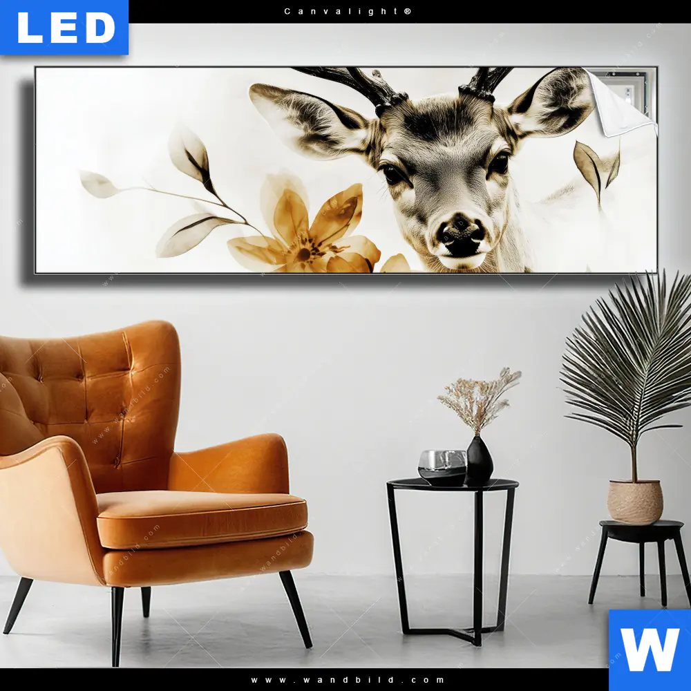 Canvalight® Leuchtbild | Blütenpracht trifft Geweih | Panorama
