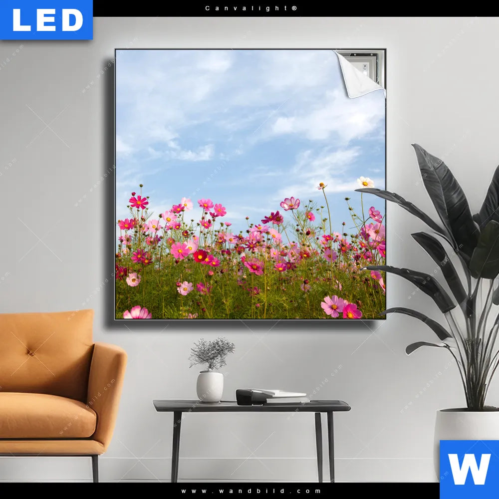 Canvalight® TEX Leuchtbild | Blumenwiese bei strahlend blauem Himmel | Quadrat