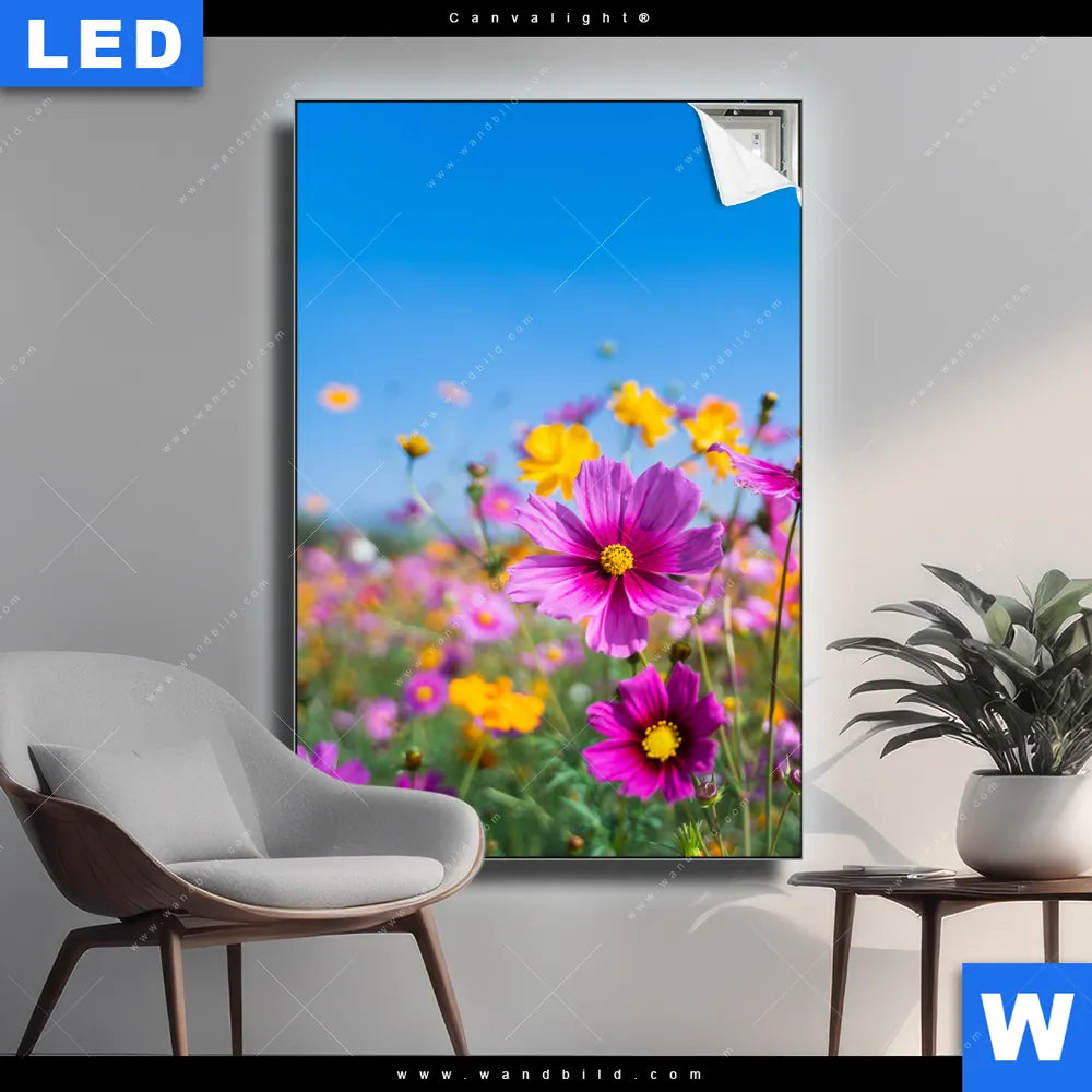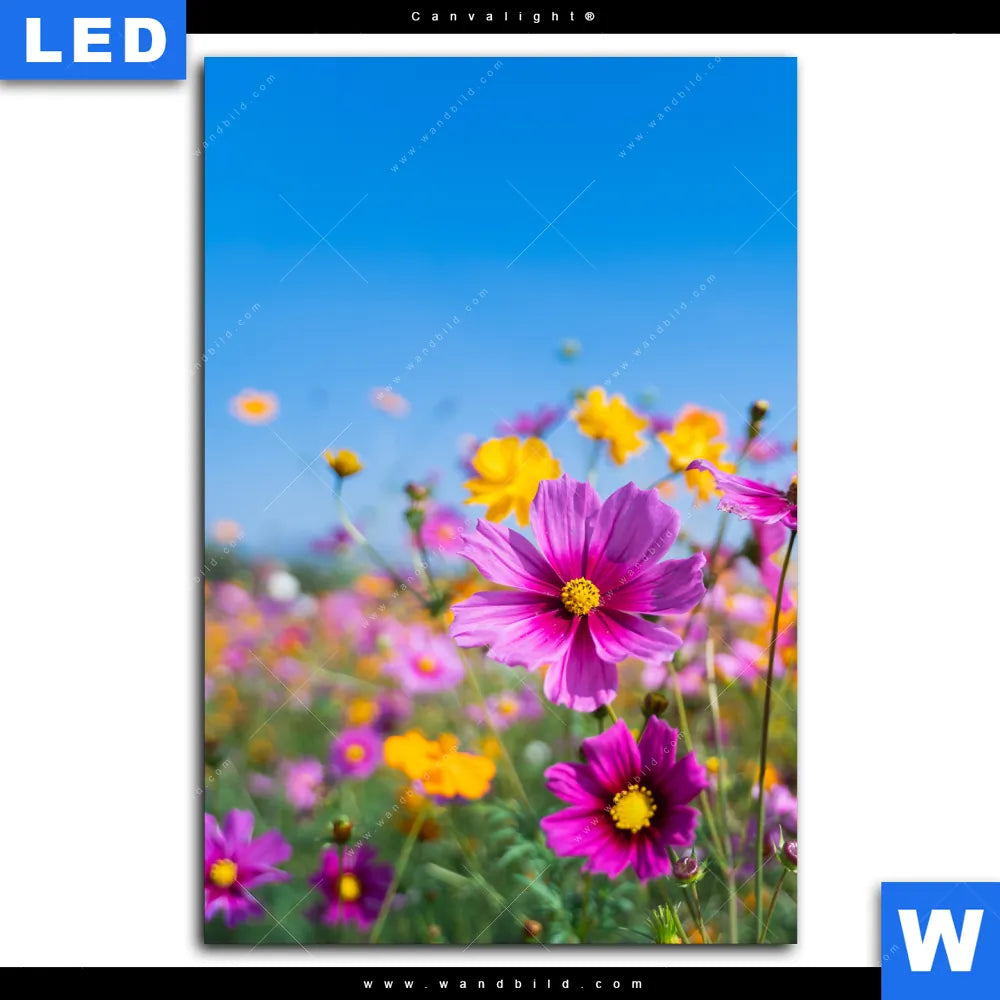 Canvalight® Leuchtbild | Blumenwiese unter blauem Himmel | Hochformat