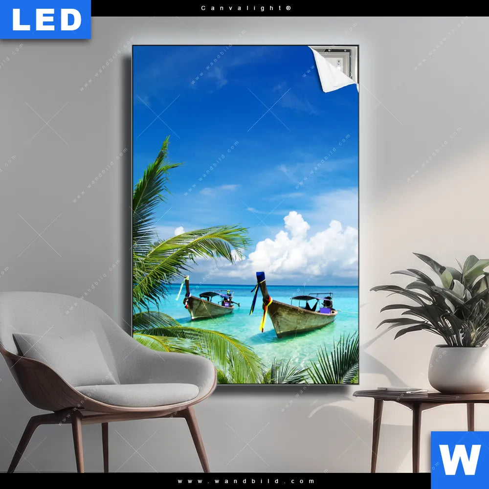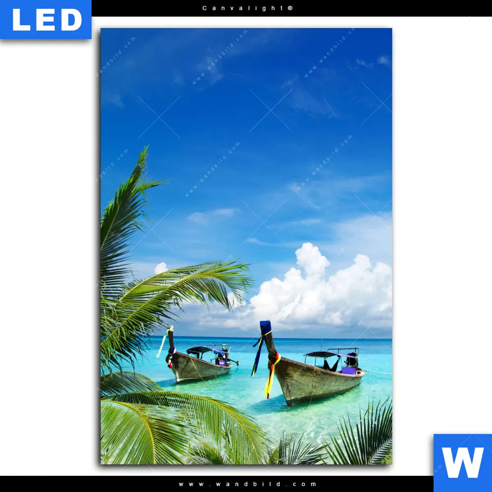 Canvalight® Leuchtbild | Boote im tropischen Meer | Hochformat