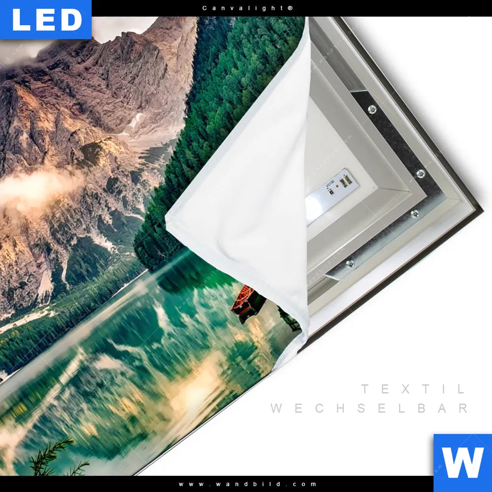LED-Textilrahmen-Bild mit austauschbarem Landschaften Textil-Druck (Wechselbild)