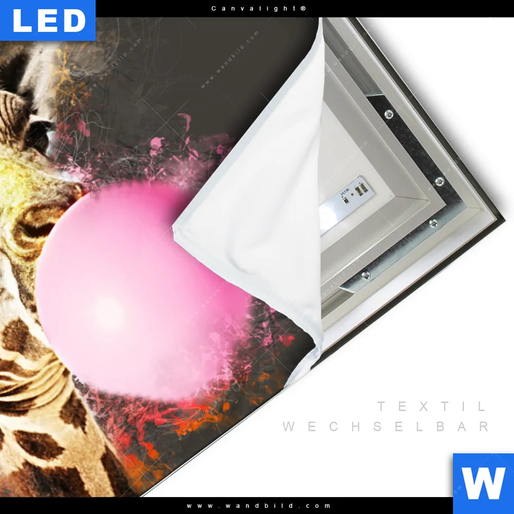 Canvalight® TEX Leuchtbild | Bubble Gum Giraffe | Querformat