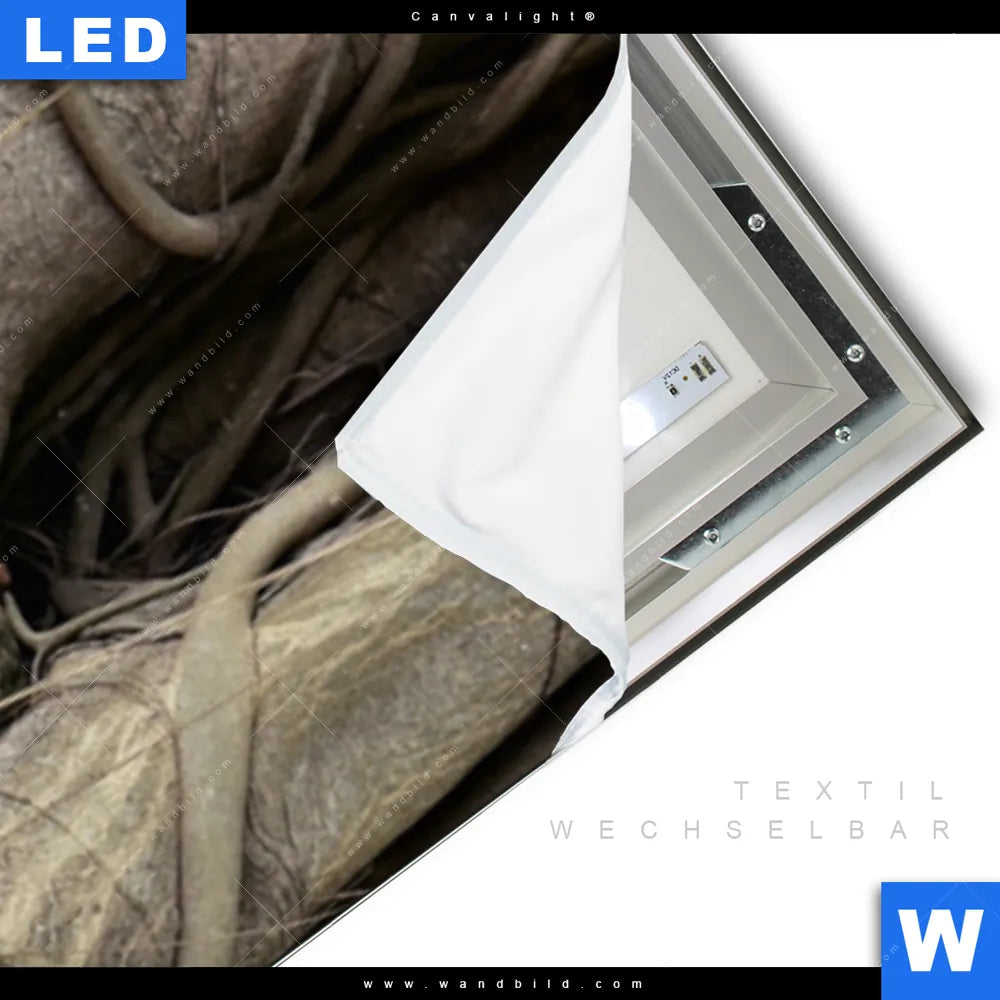 Canvalight® TEX Leuchtbild | Buddha in Baumwurzeln | Schmal