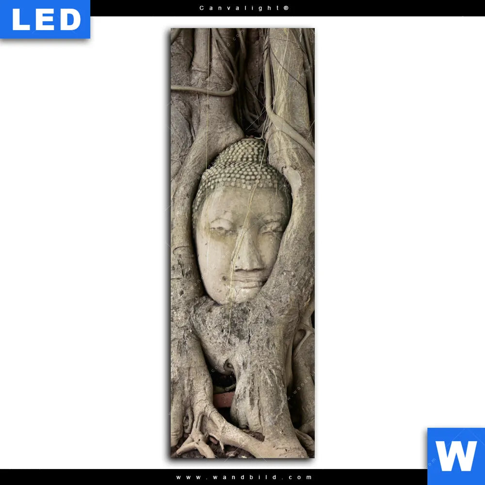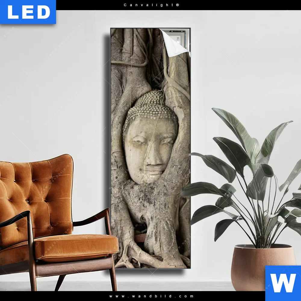 Canvalight® Leuchtbild | Buddha in Baumwurzeln | Schmal