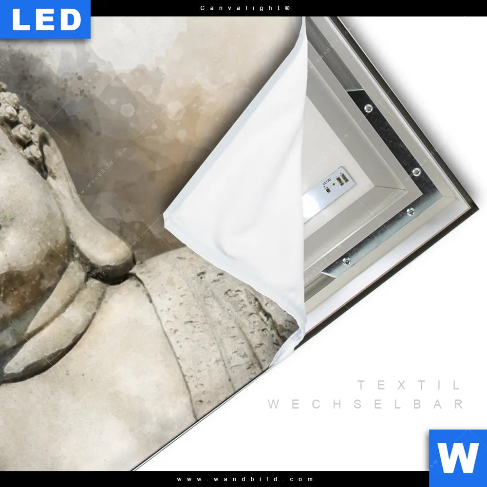 LED-Textilrahmen-Bild mit austauschbarem Buddha - Feng Shui Textil-Druck (Wechselbild)