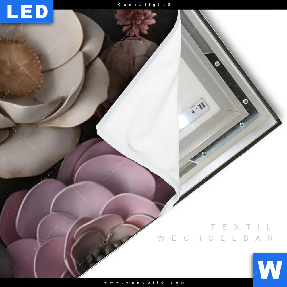 LED-Textilrahmen-Bild mit austauschbarem Buddha - Feng Shui, Blumen - Botanik Textil-Druck (Wechselbild)