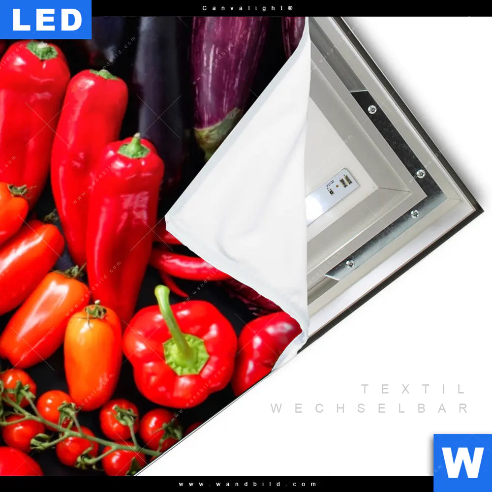 LED-Textilrahmen-Bild mit austauschbarem Essen - Trinken Textil-Druck (Wechselbild)
