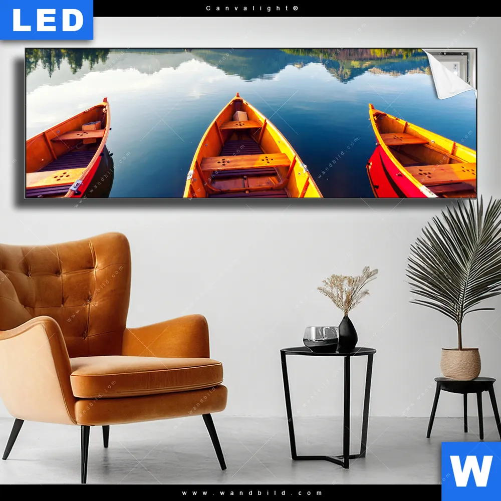 Canvalight® Leuchtbild | Drei Boote | Panorama
