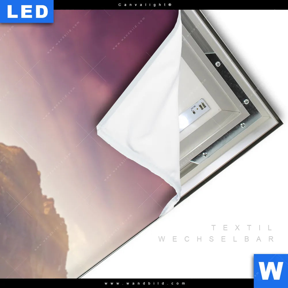 LED-Textilrahmen-Bild mit austauschbarem Landschaften Textil-Druck (Wechselbild)