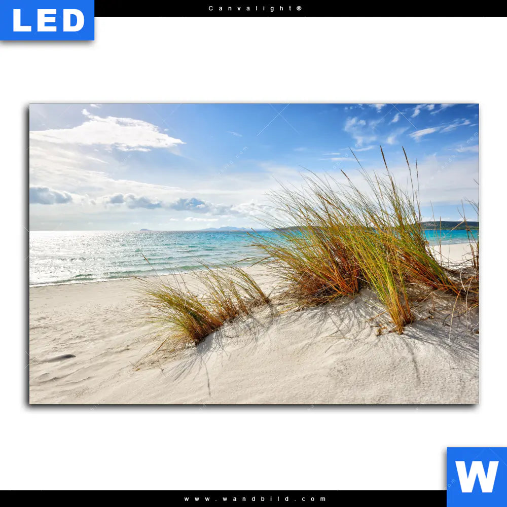 Canvalight® TEX Leuchtbild | Dünenlandschaft mit Meerblick | Querformat