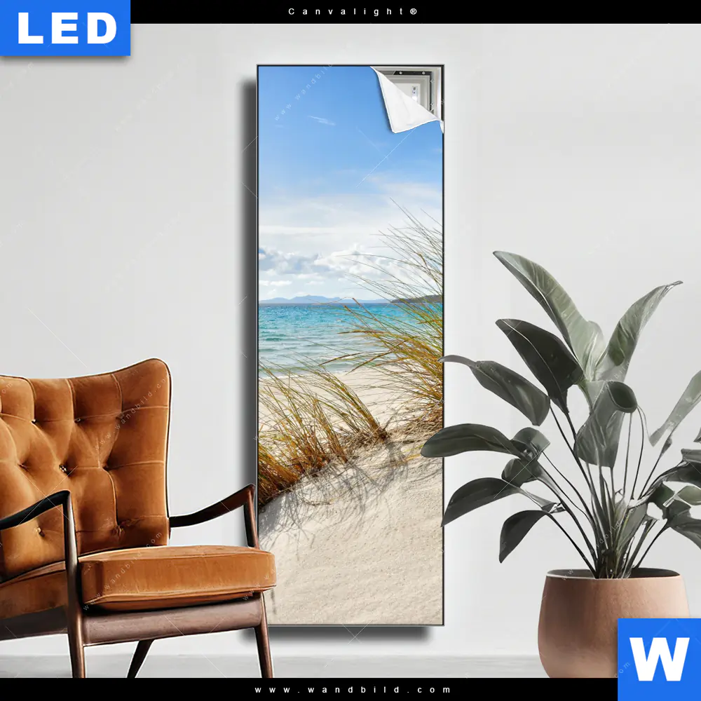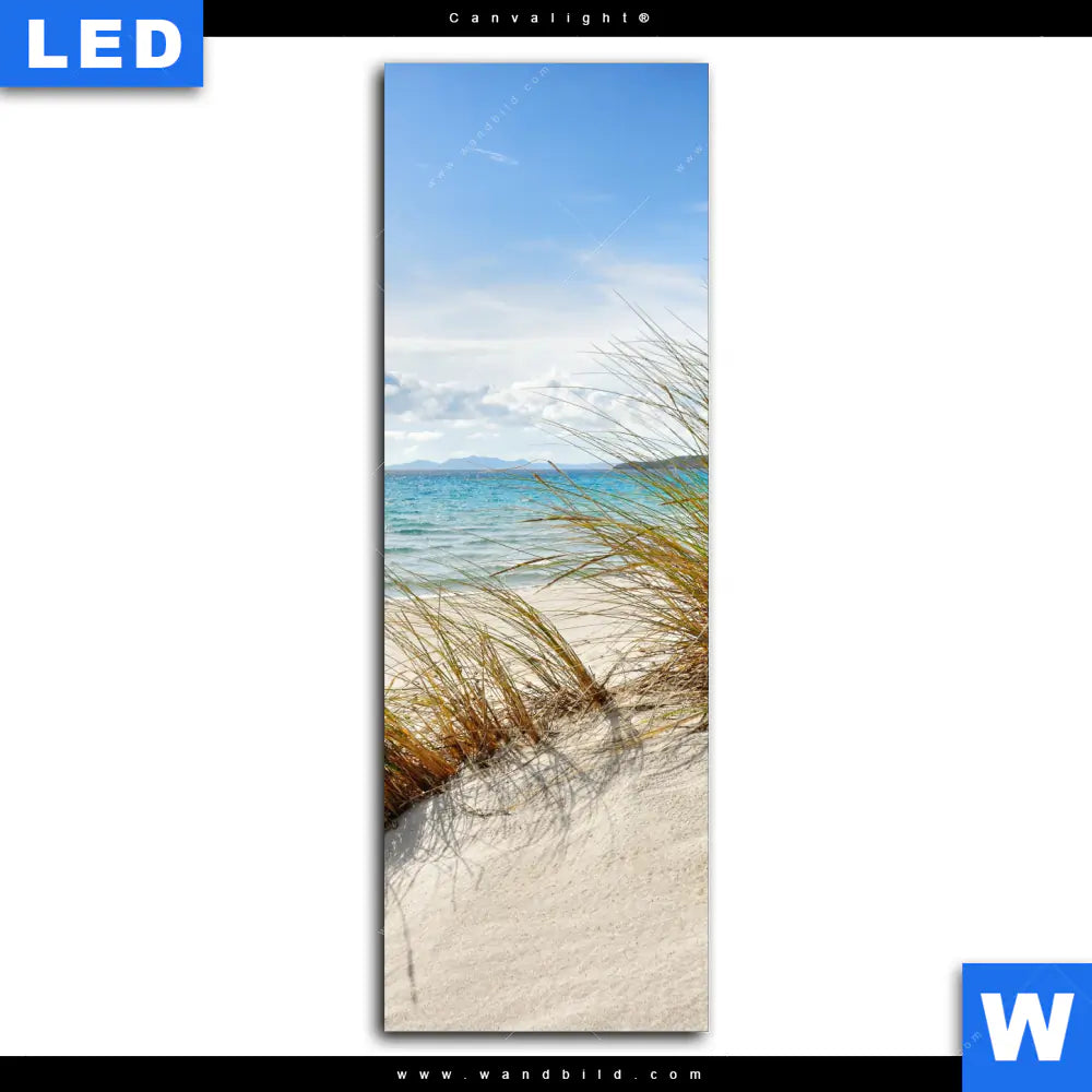 Canvalight® Leuchtbild | Dünenlandschaft mit Meerblick | Schmal