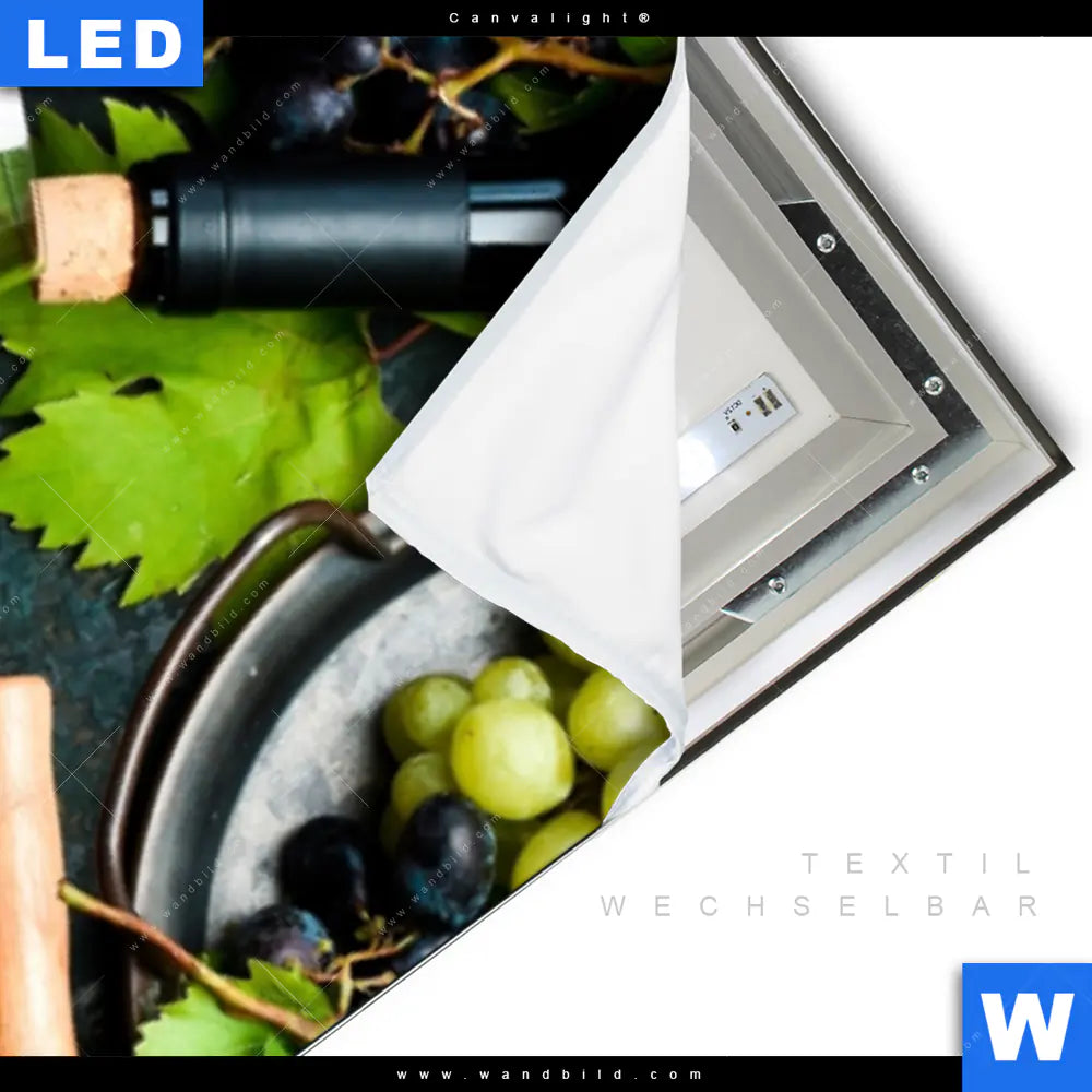 LED-Textilrahmen-Bild mit austauschbarem Essen - Trinken Textil-Druck (Wechselbild)