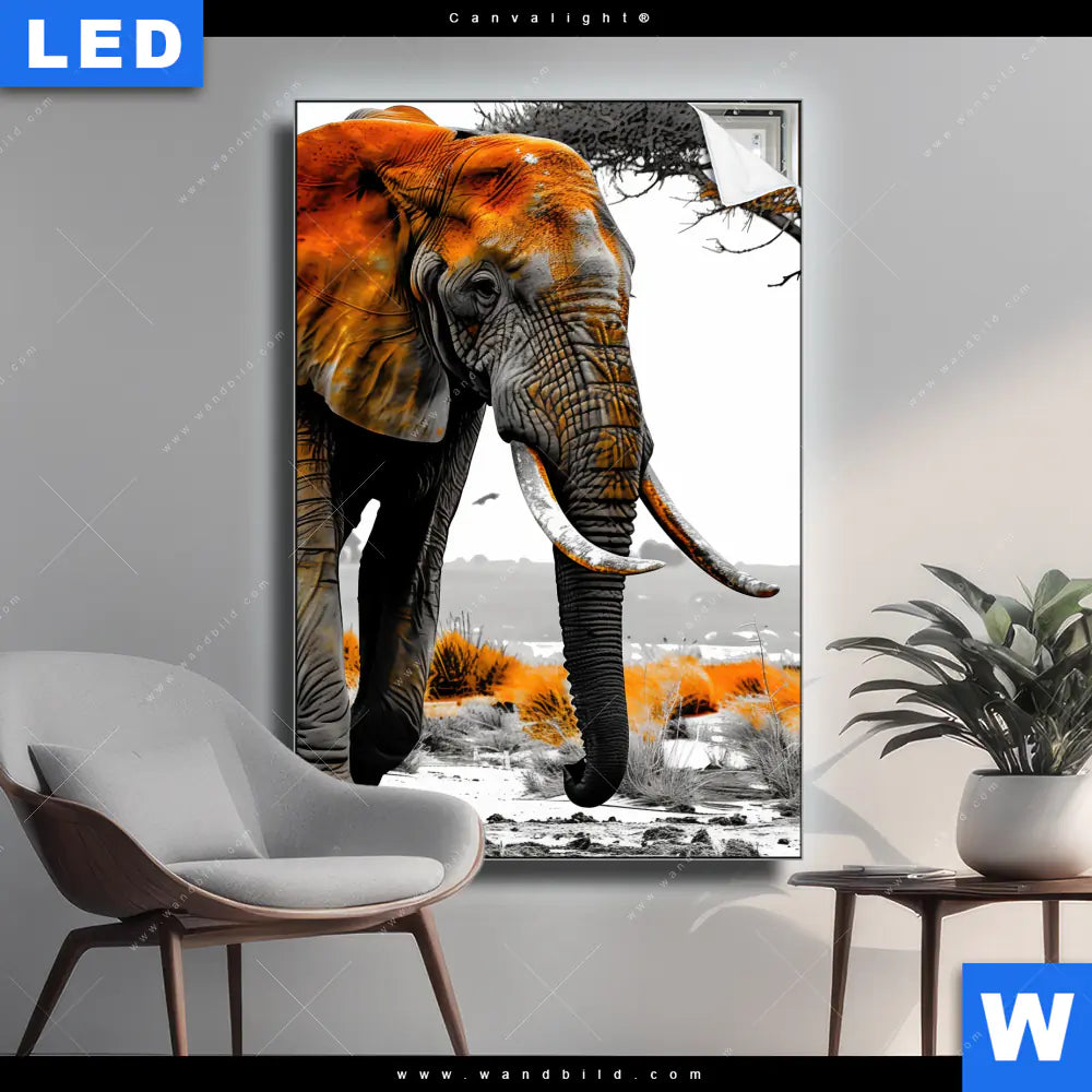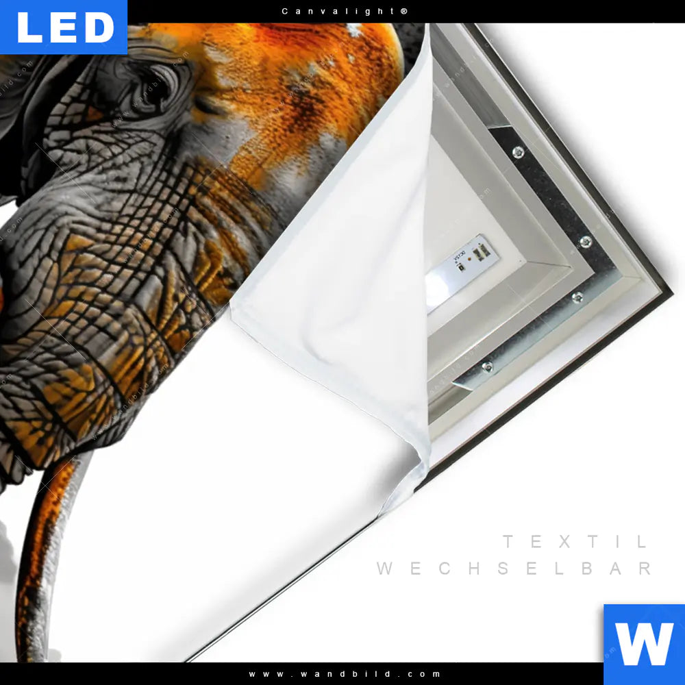 Canvalight® TEX Leuchtbild | Elefant - Kraft der Wildnis | Hochformat