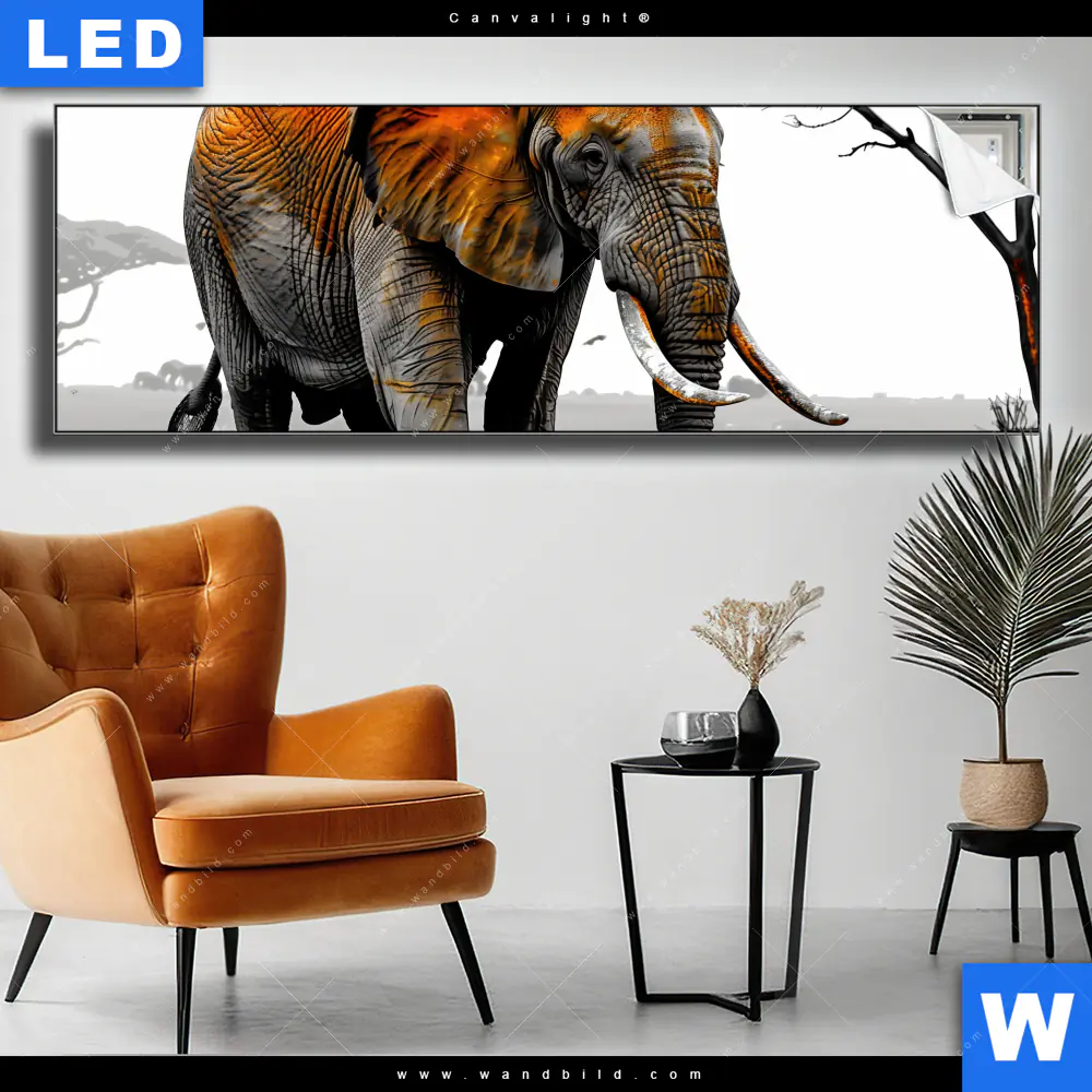 Canvalight® Leuchtbild | Elefant - Kraft der Wildnis | Panorama