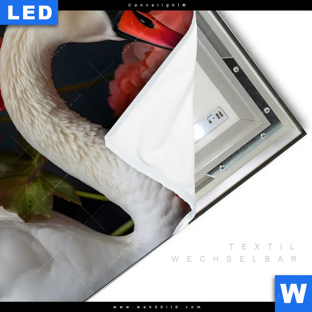 Canvalight® TEX Leuchtbild | Eleganter Schwan mit Blumen | Quadrat