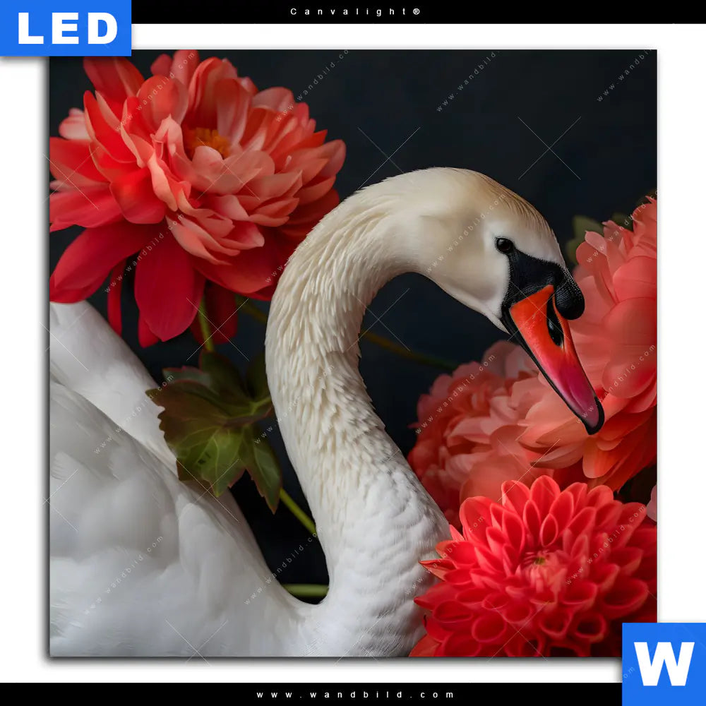 Canvalight® Leuchtbild | Eleganter Schwan mit Blumen | Quadrat