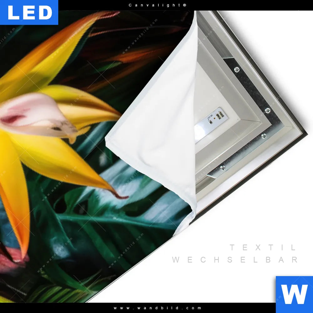 LED-Textilrahmen-Bild mit austauschbarem Blumen - Botanik Textil-Druck (Wechselbild)