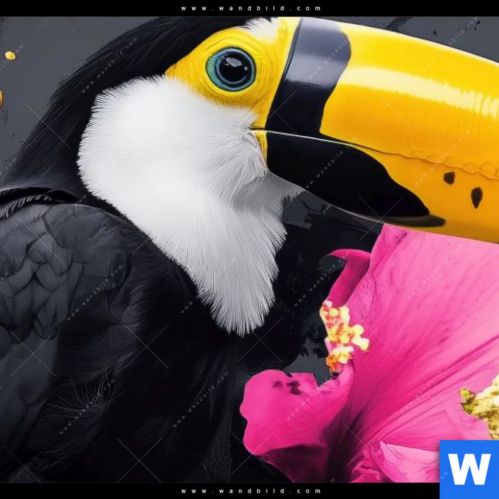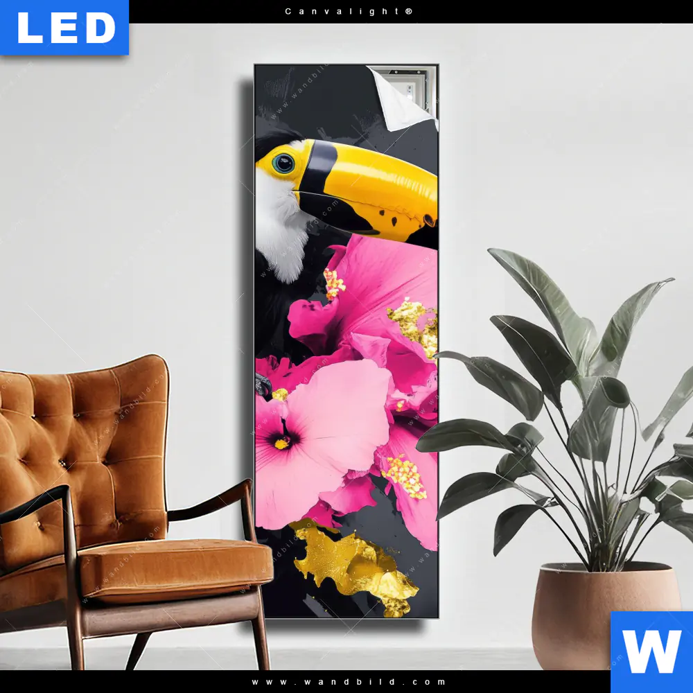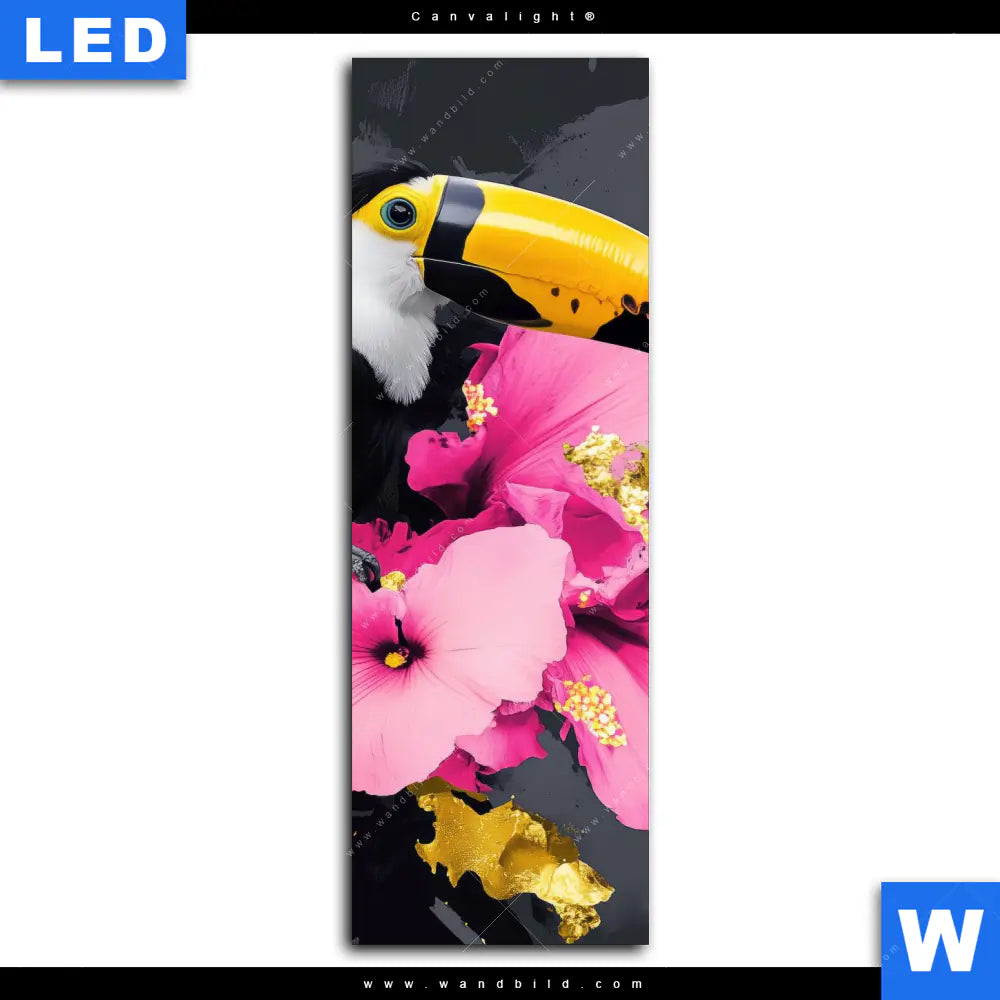 Canvalight® Leuchtbild | Exotischer Tukan mit Blüten | Schmal
