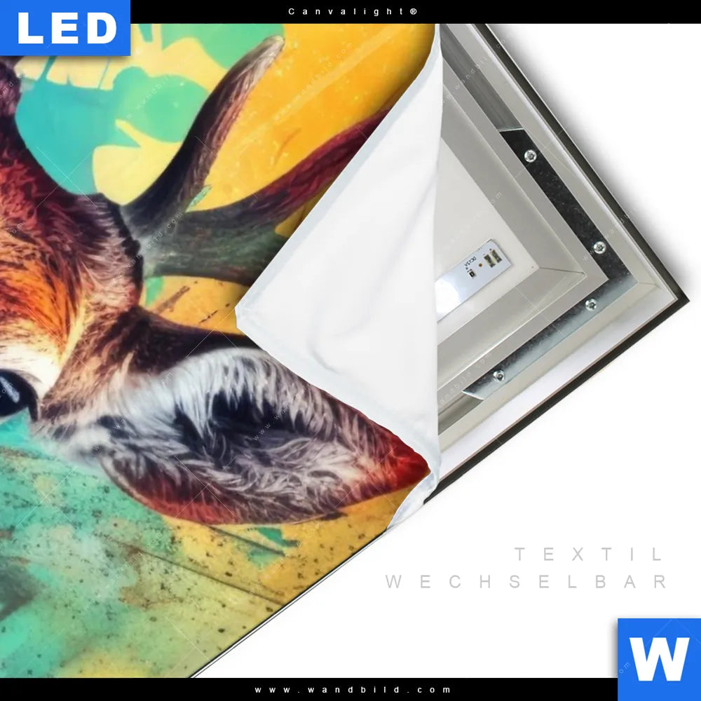 Canvalight® TEX Leuchtbild | Farbenfrohes Hirschporträt | Hochformat