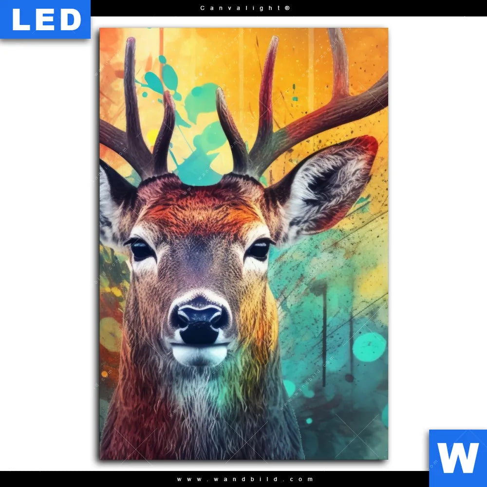 Canvalight® Leuchtbild | Farbenfrohes Hirschporträt | Hochformat