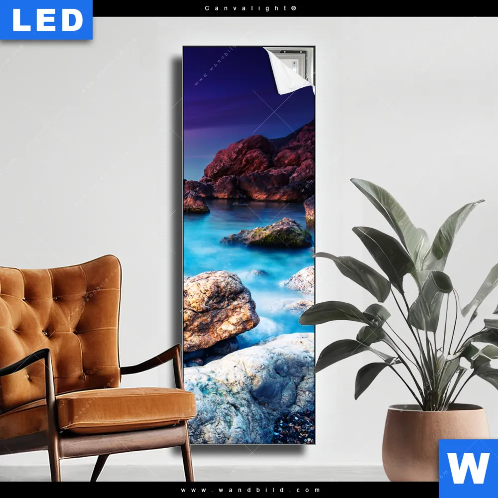 Canvalight® TEX Leuchtbild | Felsen im Meer | Schmal