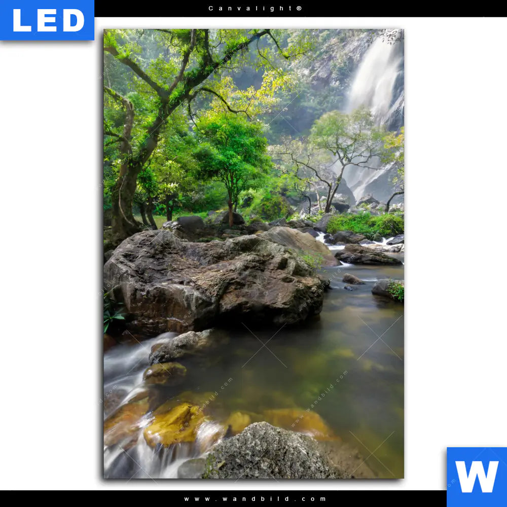 Canvalight® Leuchtbild | Felsenbach im Regenwald | Hochformat