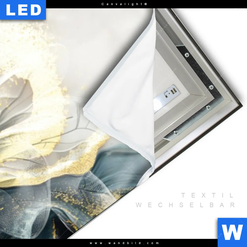 LED-Textilrahmen-Bild mit austauschbarem Blumen - Botanik, Muster - Texturen Textil-Druck (Wechselbild)