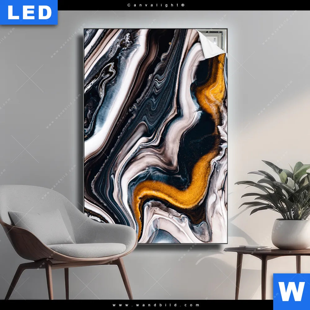 Canvalight® TEX Leuchtbild | Fluid Art Goldrausch | Hochformat