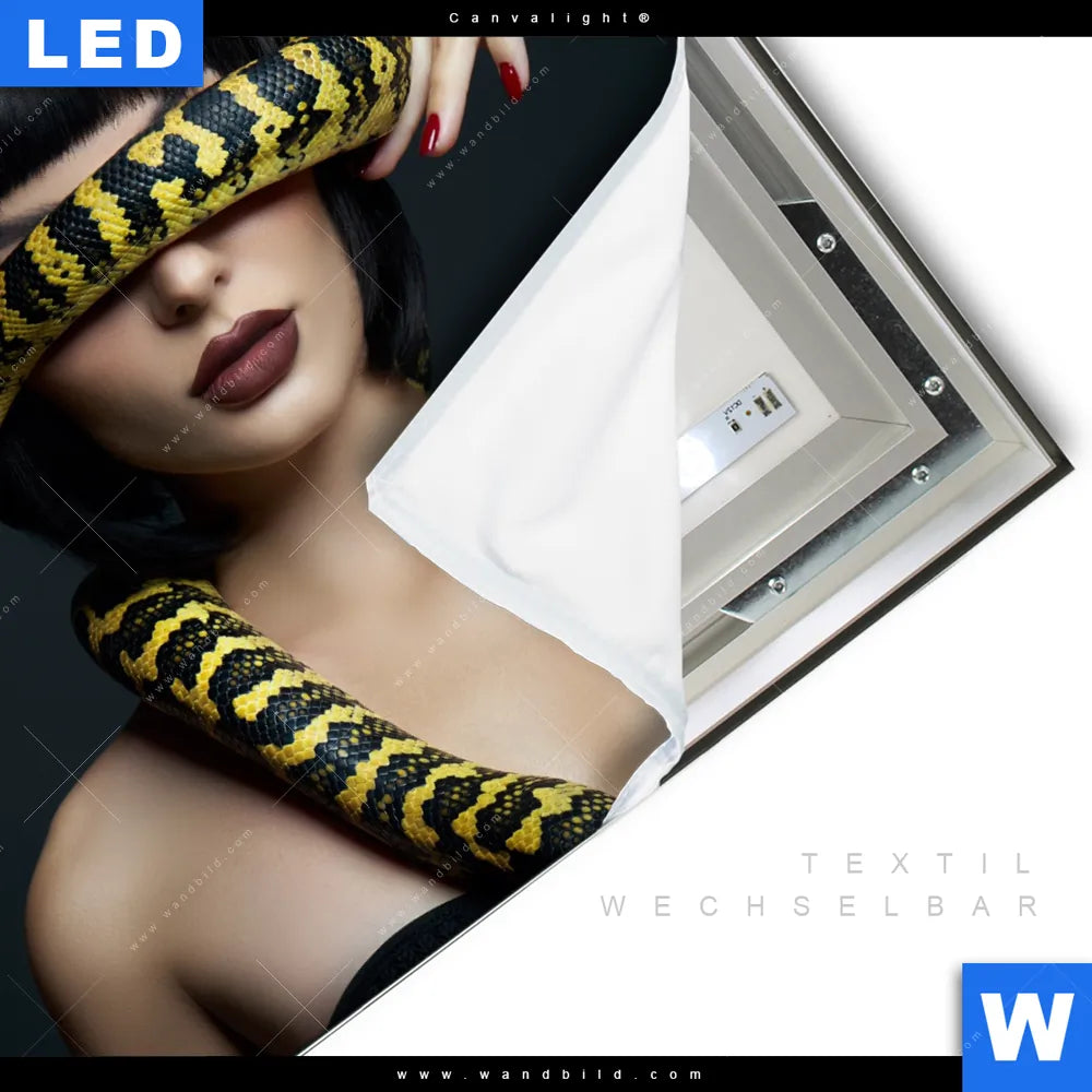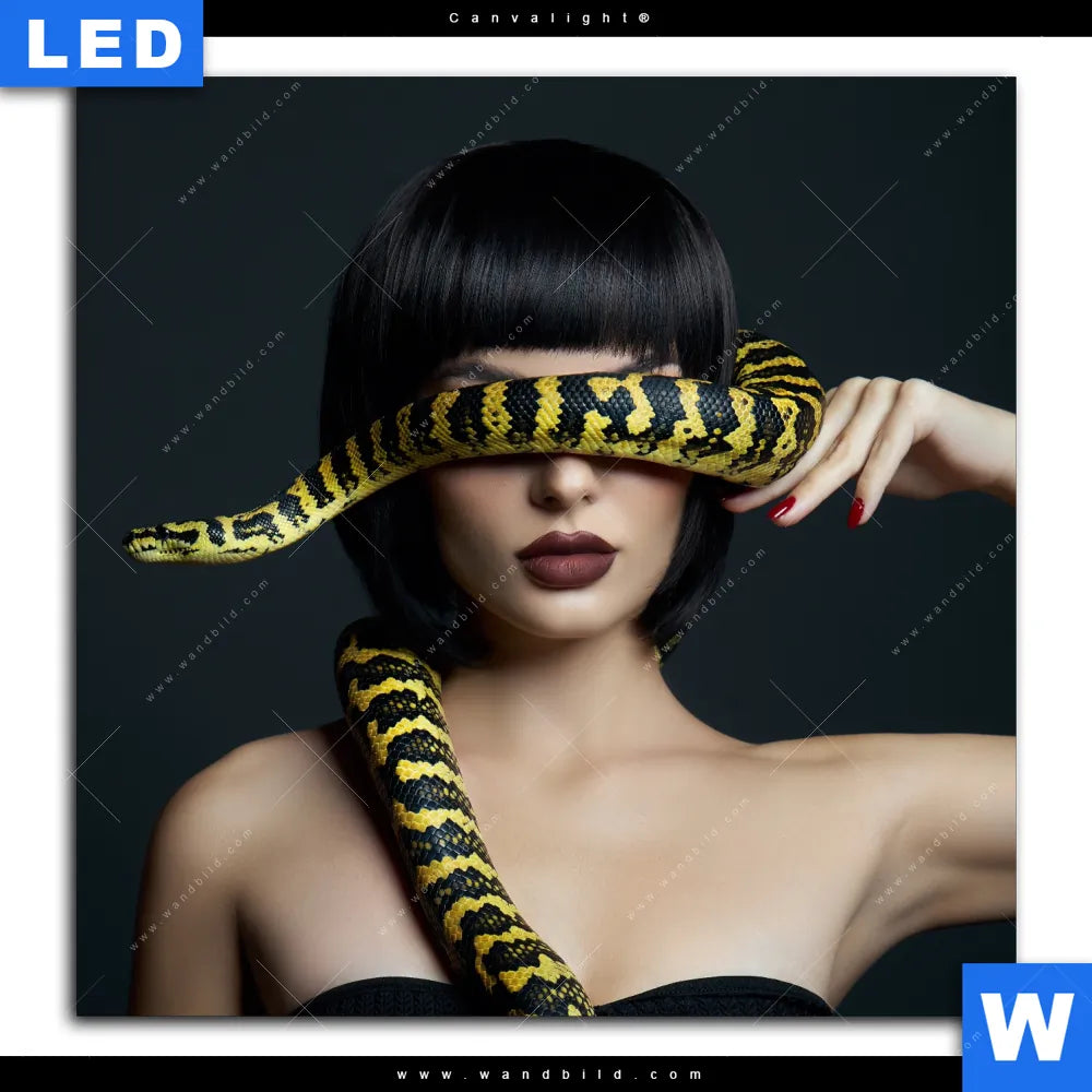 Canvalight® TEX Leuchtbild | Frau mit gelber Schlange | Quadrat