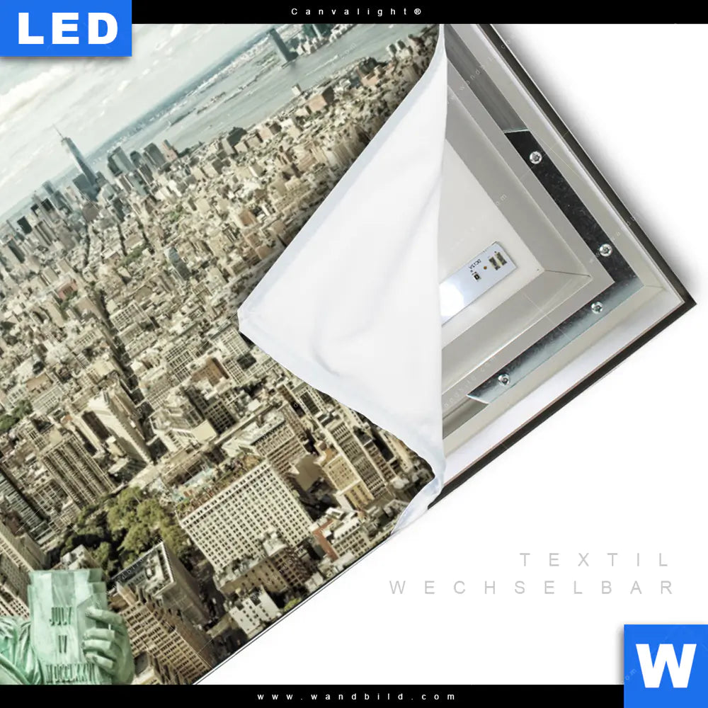 Canvalight® TEX Leuchtbild | Freiheit über Manhattan | Querformat