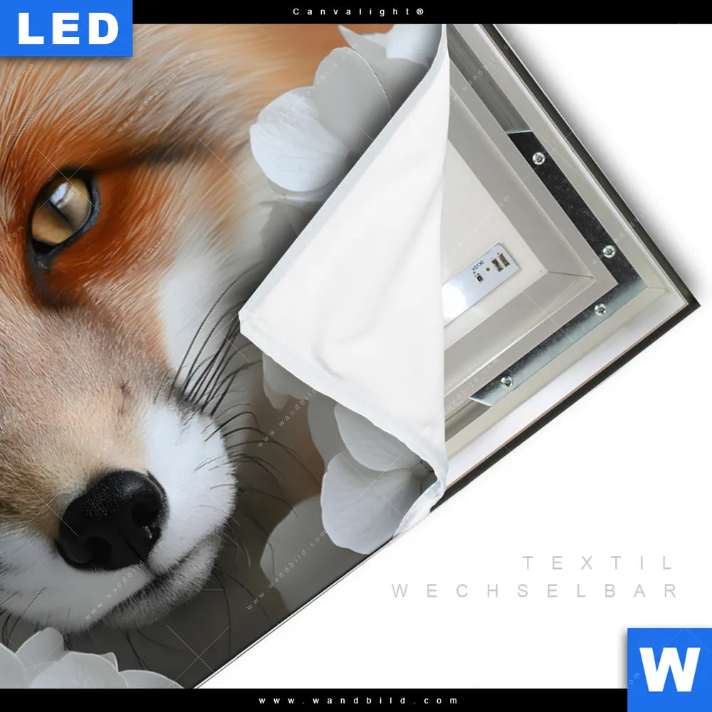 Canvalight® TEX Leuchtbild | Friedlicher Fuchs und Blumen | Querformat