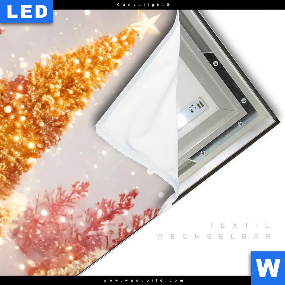 LED-Textilrahmen-Bild mit austauschbarem Winter Textil-Druck (Wechselbild)