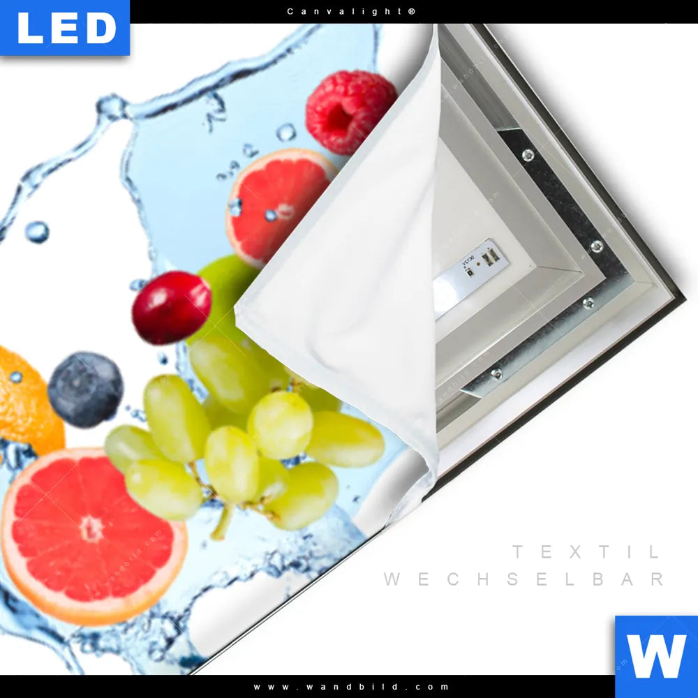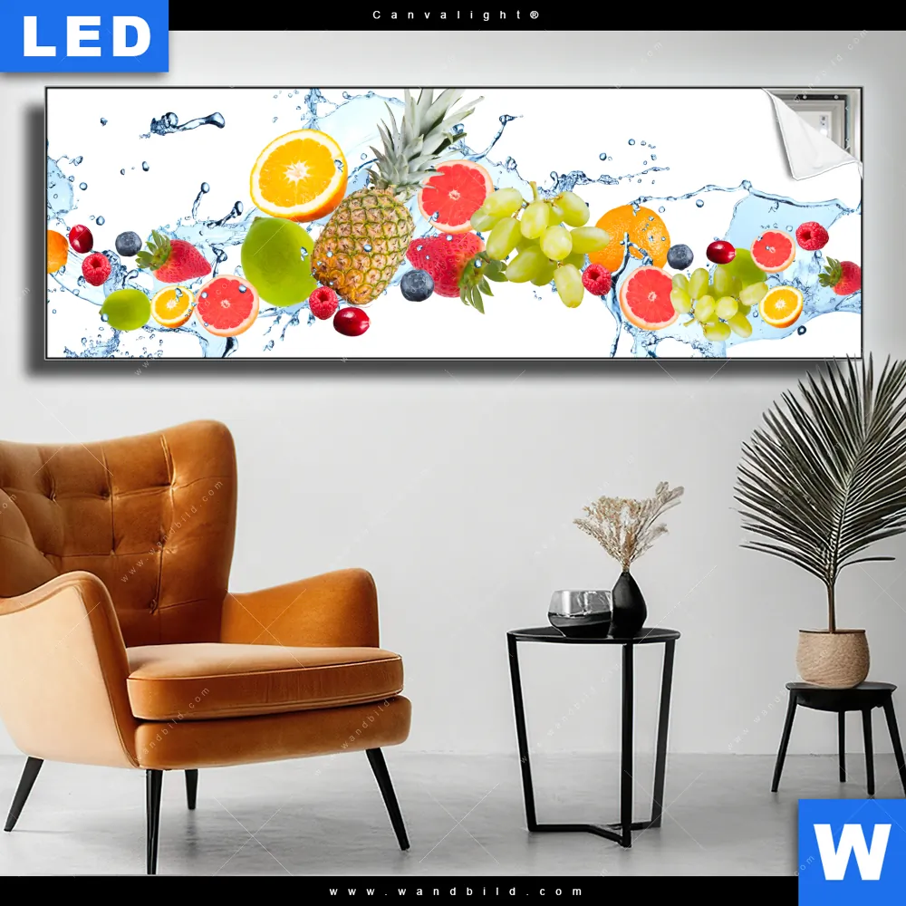 Canvalight® TEX Leuchtbild | Früchte in Spritzwasser | Panorama