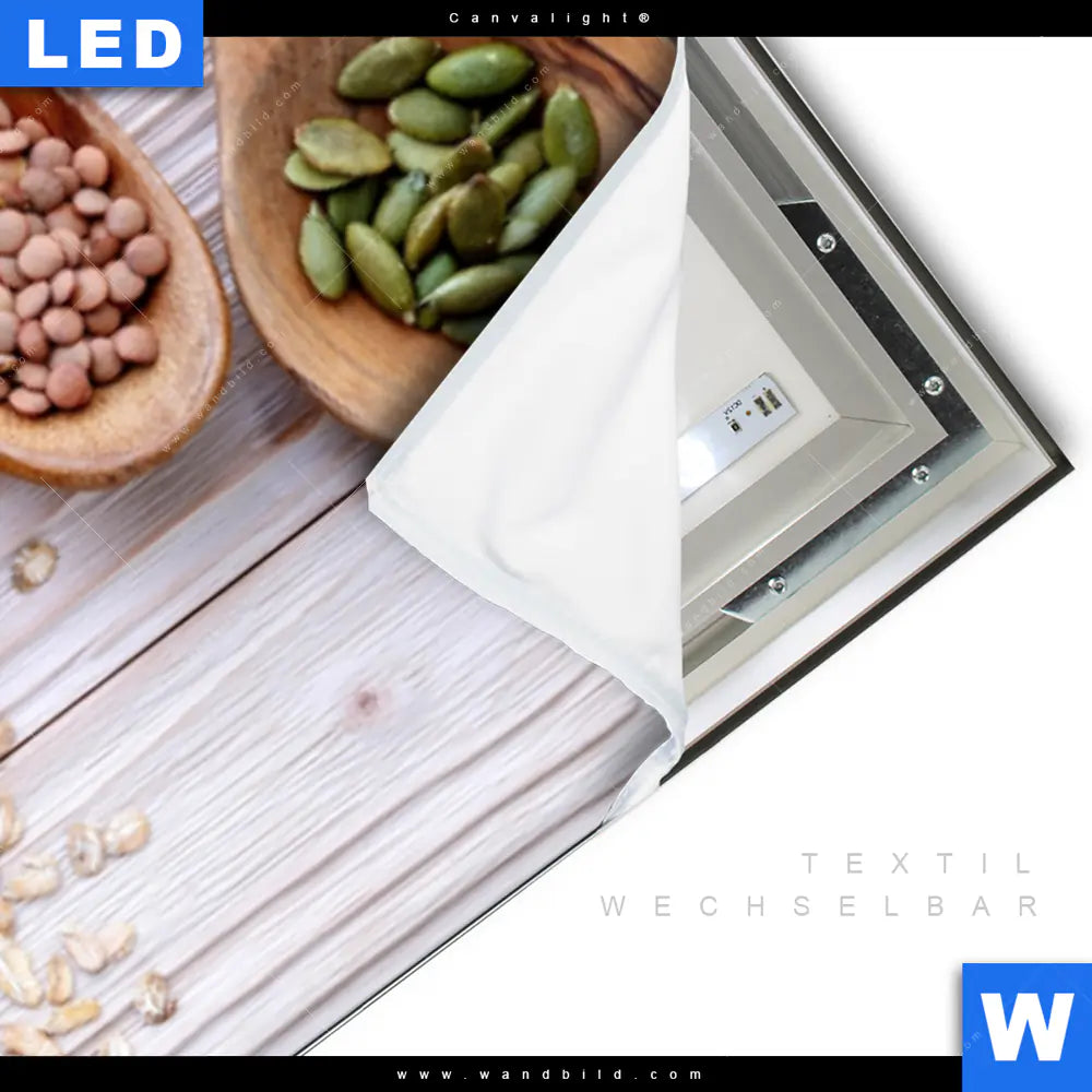 LED-Textilrahmen-Bild mit austauschbarem Essen - Trinken Textil-Druck (Wechselbild)