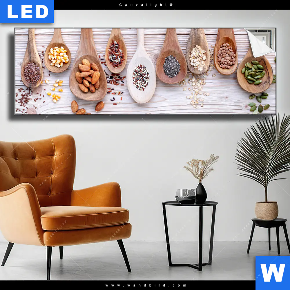 Canvalight® Leuchtbild | Gesunde Vielfalt aus Löffeln | Panorama