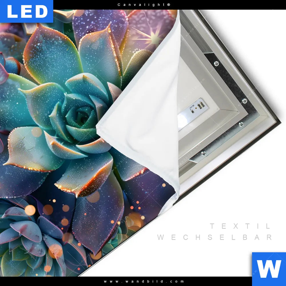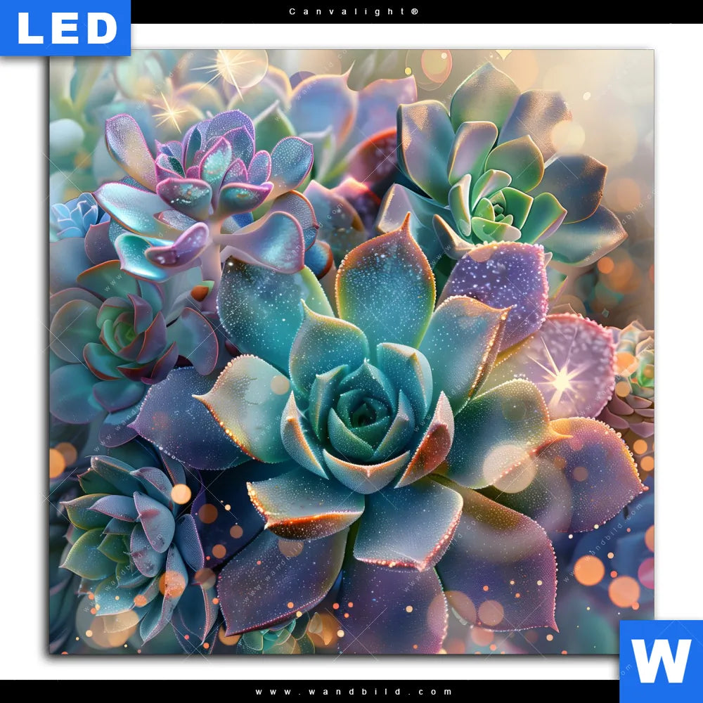 Canvalight® TEX Leuchtbild | Glänzende Sukkulenten | Quadrat
